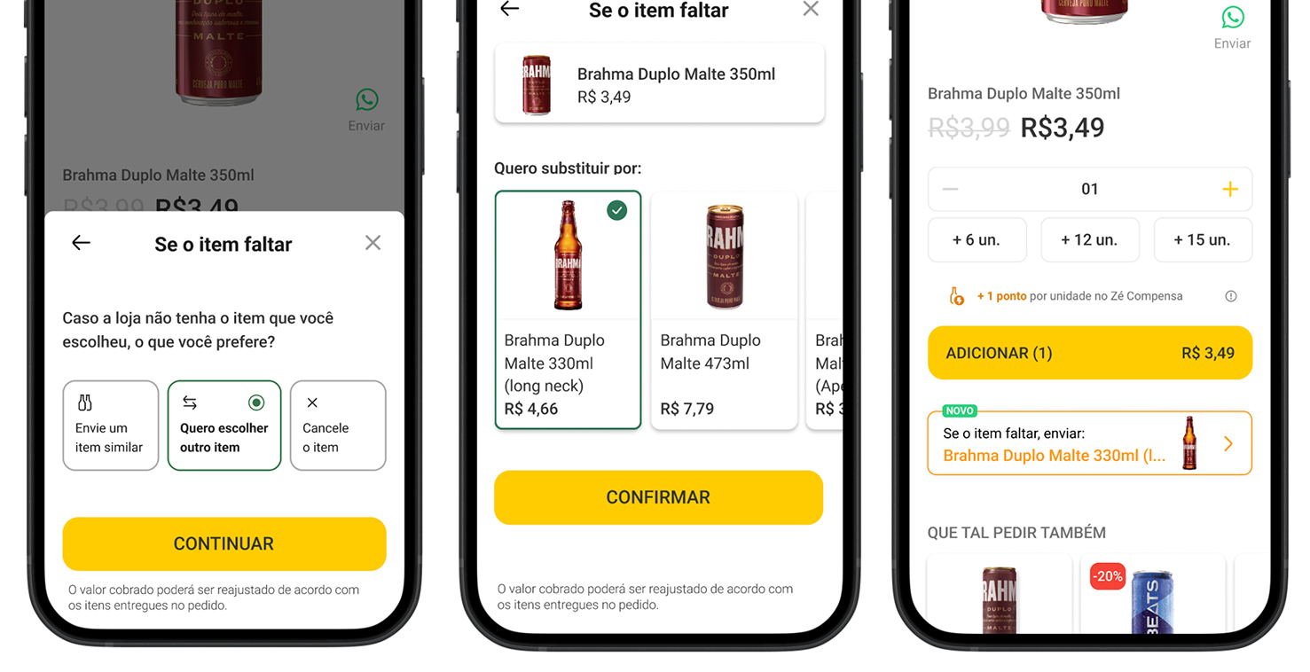 Zé Delivery (Brazil) and TaDa (Latin America) are AB InBev’s beverage delivery apps, delivering cold drinks in minutes. During peak demand, stock shortages after checkout caused unexpected replacements and order cancellations. This project focused on solving these two key experience problems.