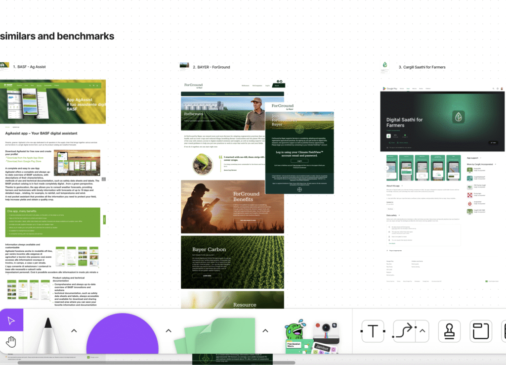 I benchmarked global agtech competitors to map key features and identify usability patterns. To align priorities, I facilitated a MoSCoW workshop with stakeholders, defining the MVP scope and building the feature backlog.