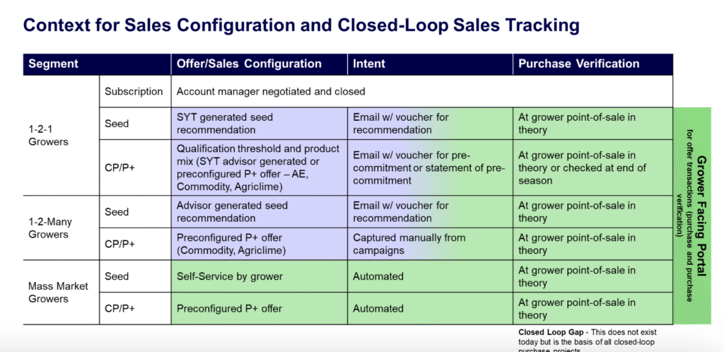 - Provide personalized recommendations for seeds and crop protection products based on the company’s portfolio