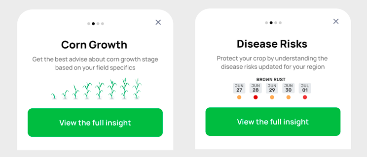 A key differentiator we developed is the Insights layer, where users receive crop-growth information tailored to what they are planting, along with disease-risk assessments.