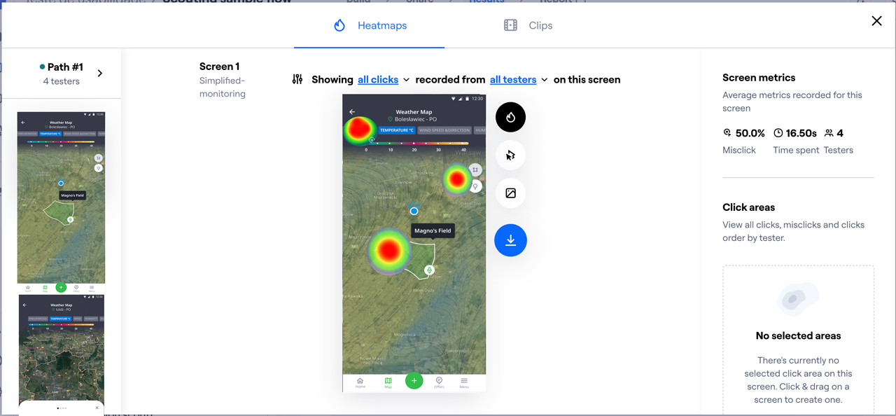 Before developer implementation, usability tests were conducted with the interactive prototypes using Maze. I defined user navigation missions within the map and insights views to collect data on time and effective clicks.